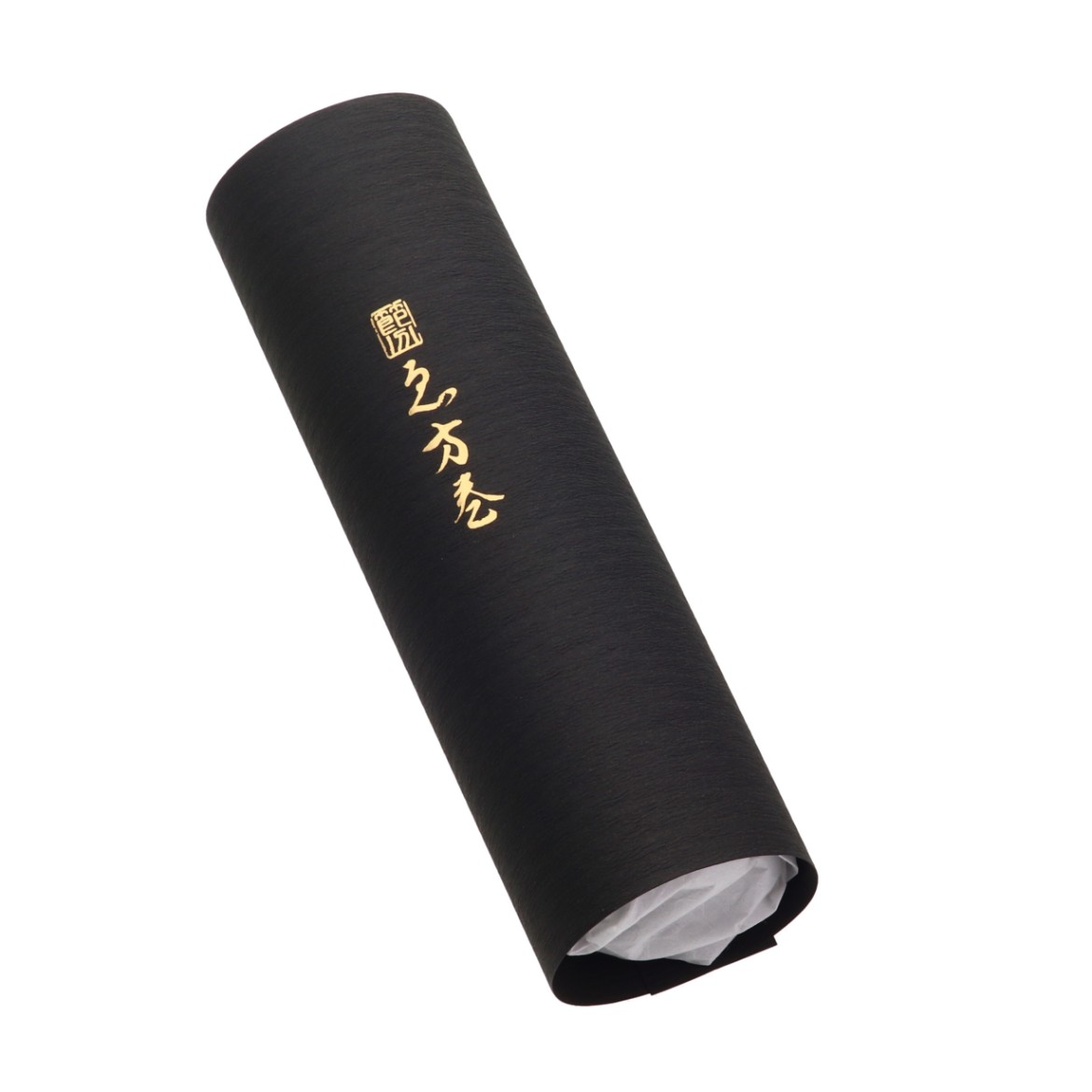 表面には、まるで木肌のような凹凸のある和紙を使用。マットな黒の風合いが落ち着いた高級感を演出します。しっかりとした厚みとコシがあり、巻いたときも形が崩れにくく、美しい筒状をキープできます。
