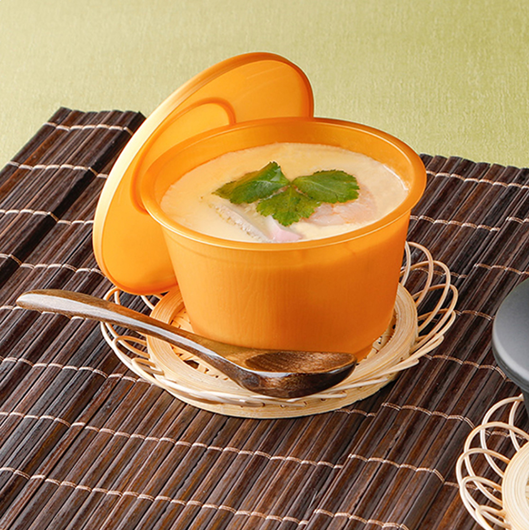 湯煎・電子レンジ対応の、バイオPPを一部使用した茶碗蒸し容器です。