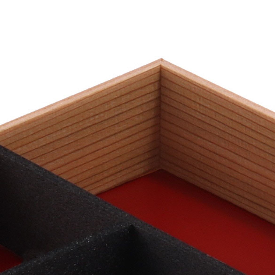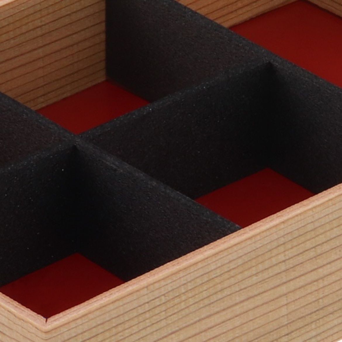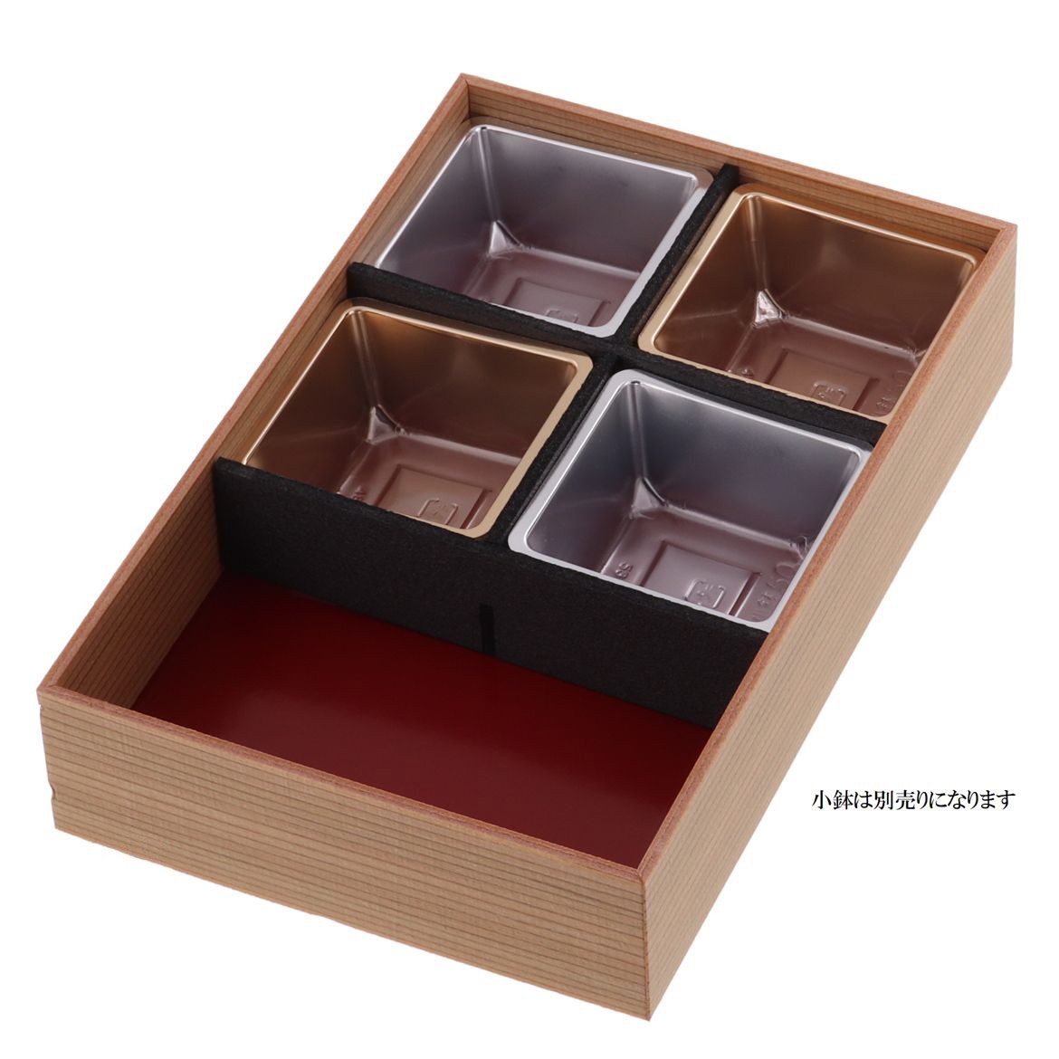 五分する仕切りが付いており、ご飯を多めに入れたいときに適した折箱です。