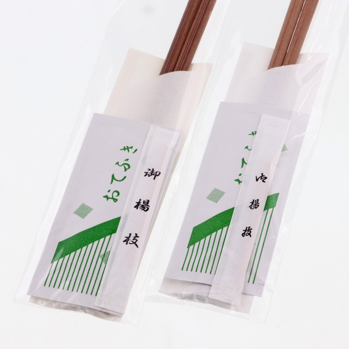お弁当に一緒に付けたい、箸とおてふきと楊枝のセットです。