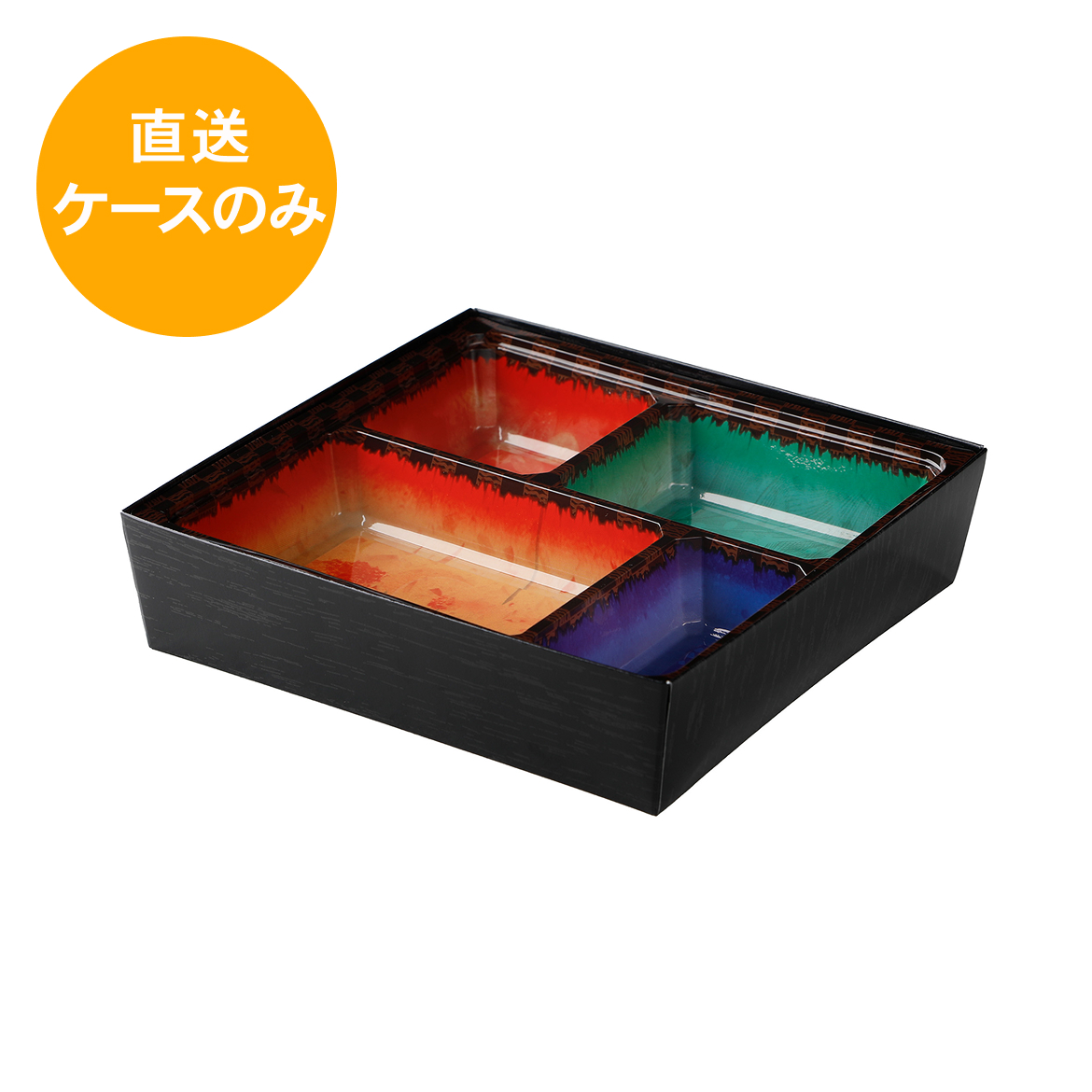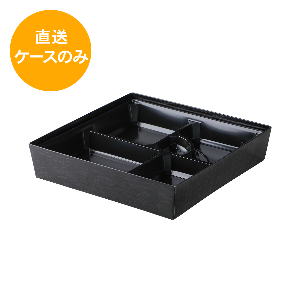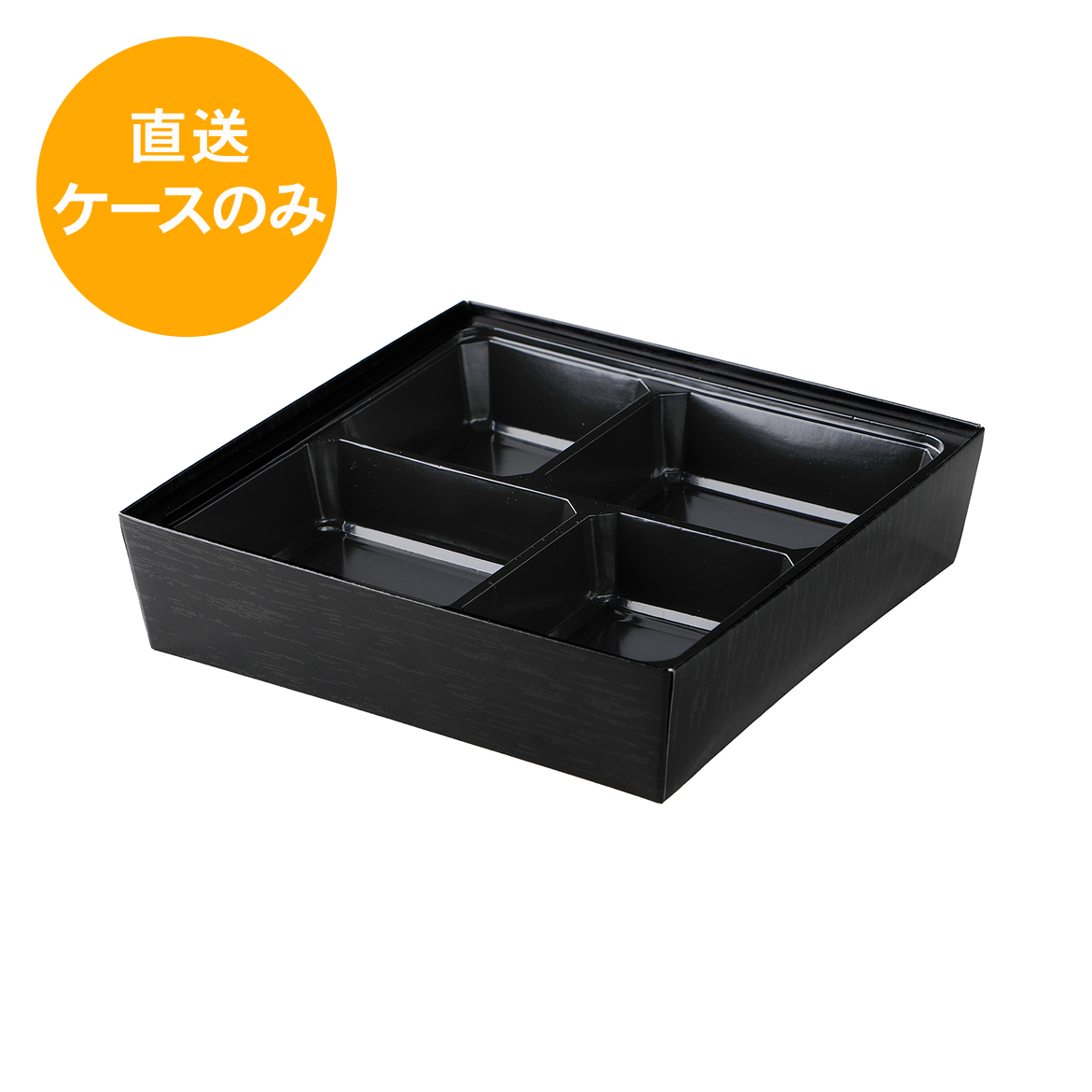 単価341.0円~※本体と中仕切が別売です。 足付で高級感のある紙ボックスタイプの一段弁当(本体のみ)です。 黒色のシンプルなボックスデザインです。 蓋の裏面にはフィルムが貼っており、そちらに箸やおしぼりを収納すること... -