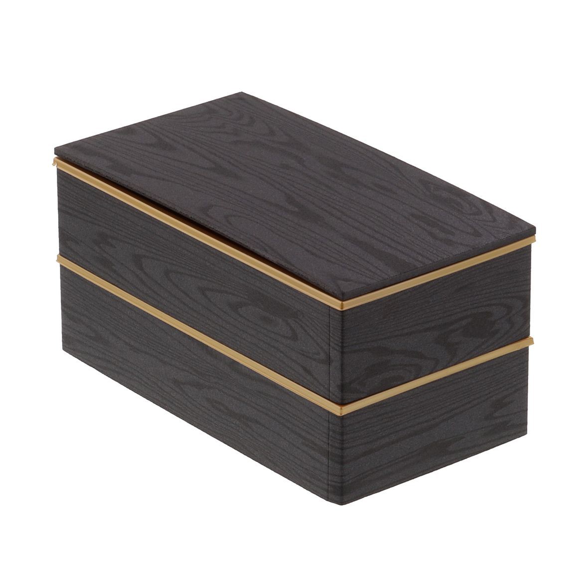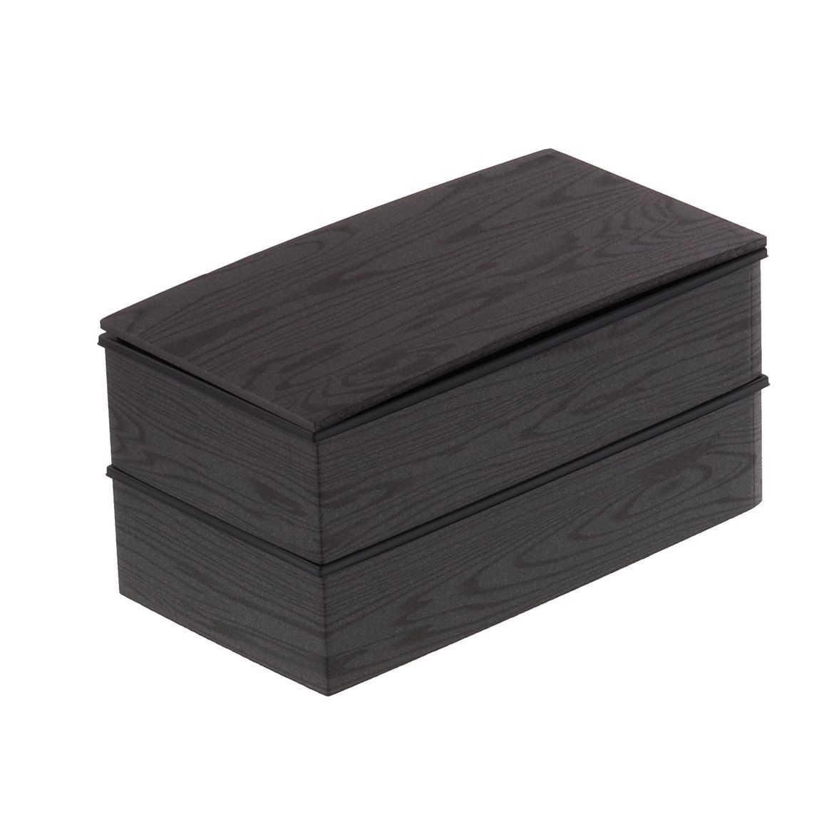 単価102.0円~トレーは内蔵されており、タレや汁が漏れにくい形状です。高級感のあるシックな外装で、1段・2段と選べます。組み立て式のため在庫場所も抑えられ、おすすめです。 -