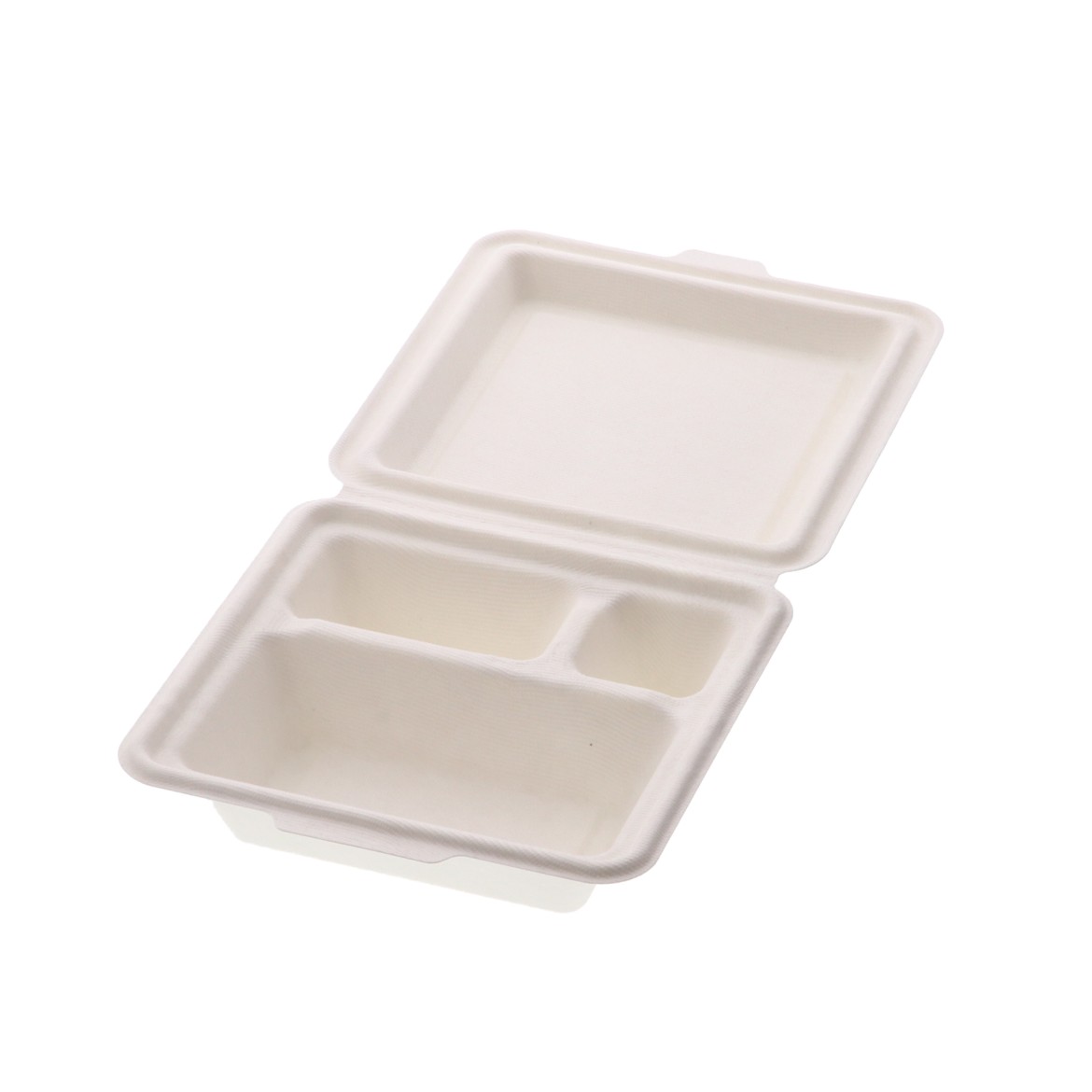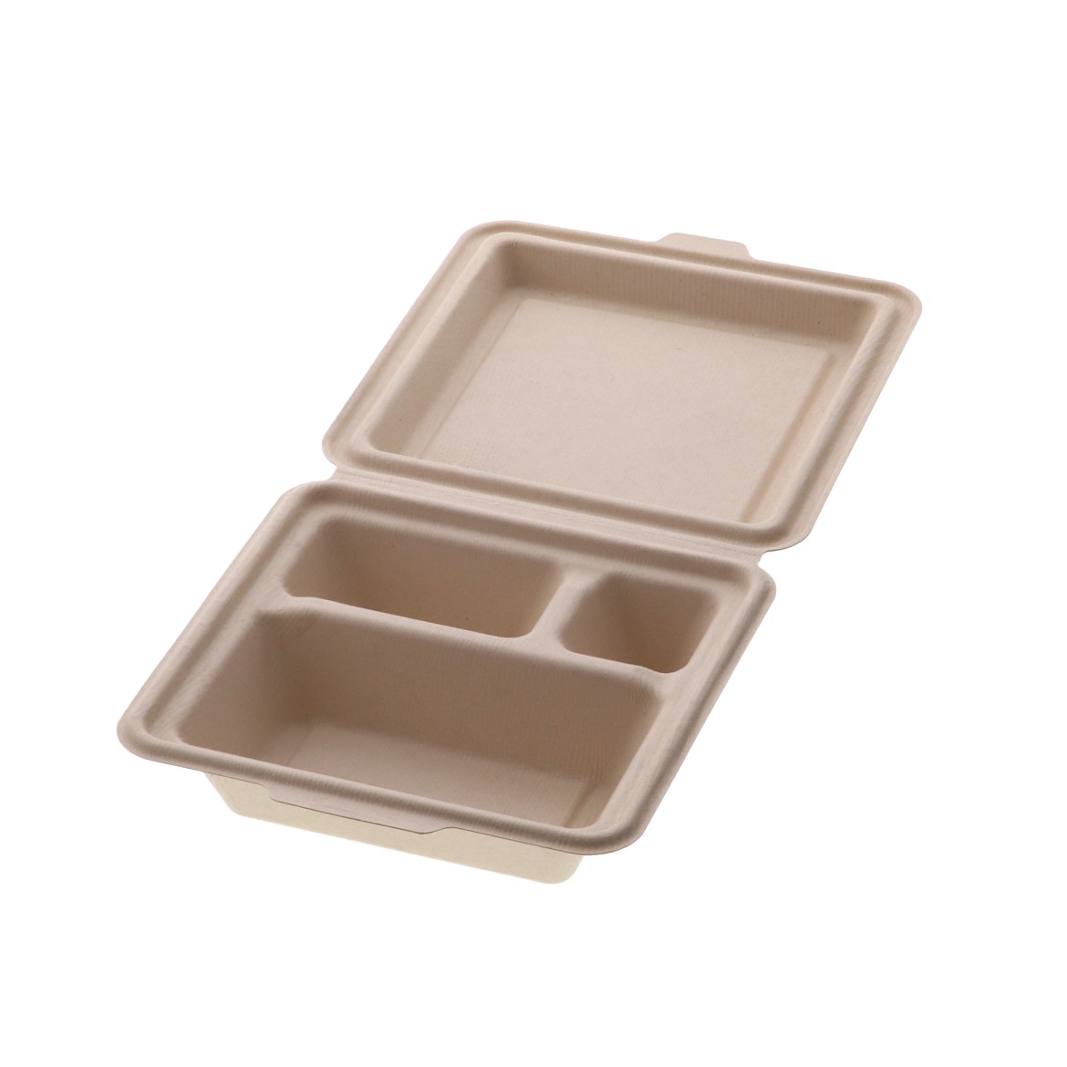 単価87.0円~3つ仕切の電子レンジ対応のバガス(サトウキビ)の素材を使った蓋一体型モールド容器です。 約180g×2と約380gの容量で、ランチボックス、お弁当容器としてもおすすめです。 スタッキングし... -