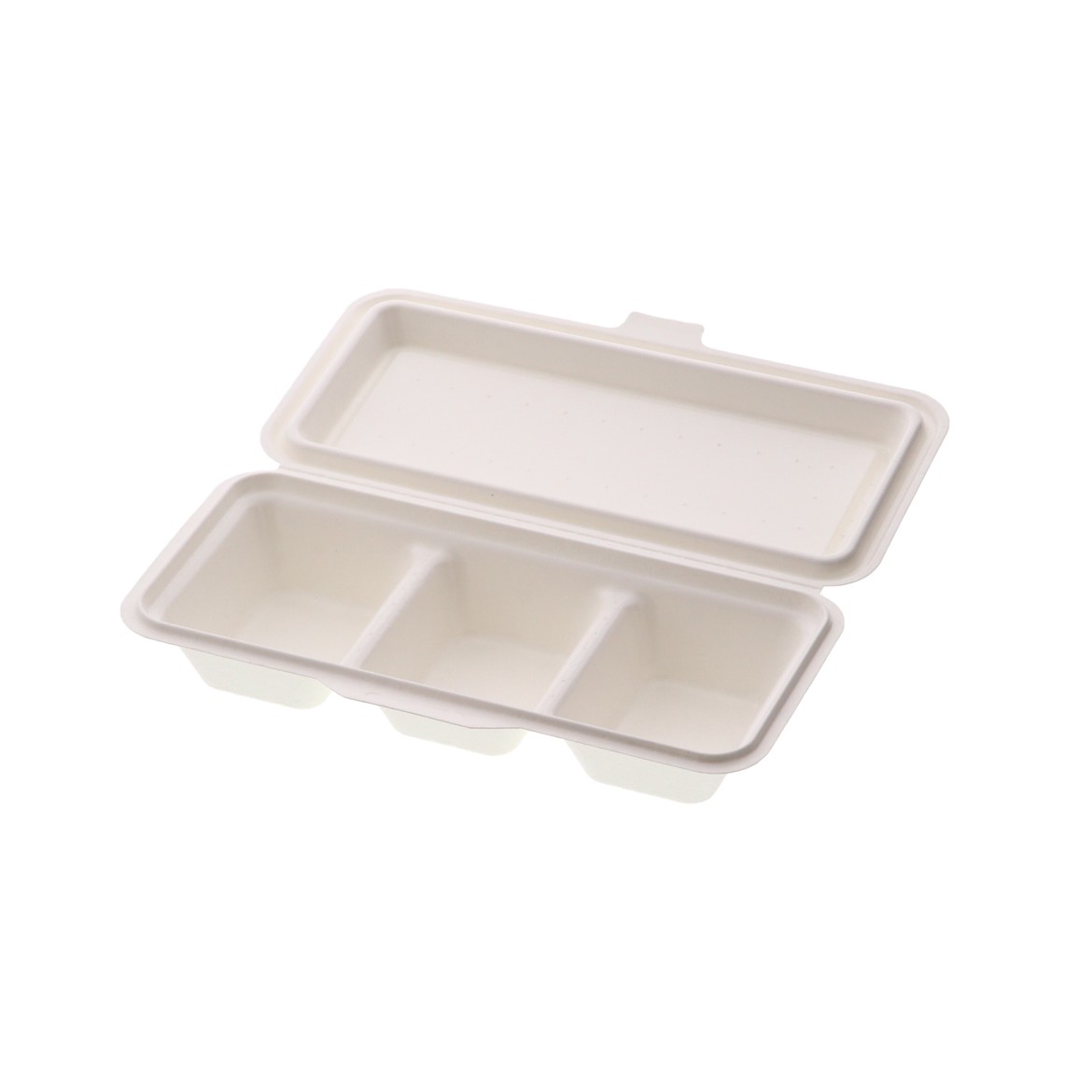 単価73.0円~3つ仕切の電子レンジ対応のバガス(サトウキビ)の素材を使った蓋一体型モールド容器です。 約70g、約140g、約300gの容量で、お惣菜容器やお弁当容器としてもおすすめです。 スタッキングして陳列が可... -