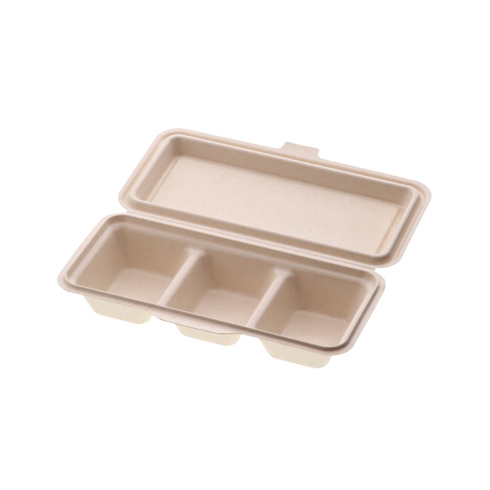 単価53.0円~3つ仕切の電子レンジ対応の蓋一体型パルプモールド容器です。 各90gずつの容量で、お惣菜容器や少量のお弁当容器としてもおすすめです。 スタッキングして陳列が可能です。 【ご注意】 製品の特製上、本体... -