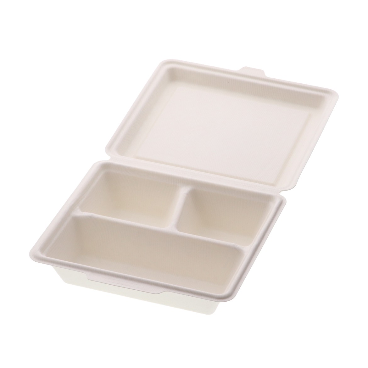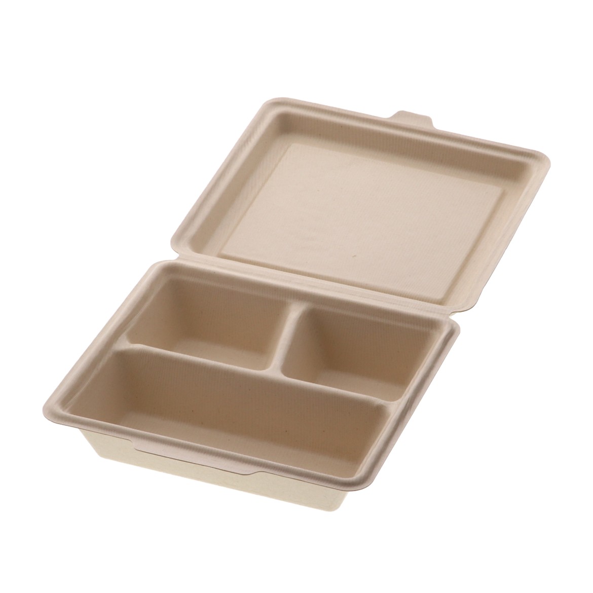 単価87.0円~3つ仕切の電子レンジ対応のバガス(サトウキビ)の素材を使った蓋一体型モールド容器です。 約180g×2と約380gの容量で、ランチボックス、お弁当容器としてもおすすめです。 スタッキングし... -