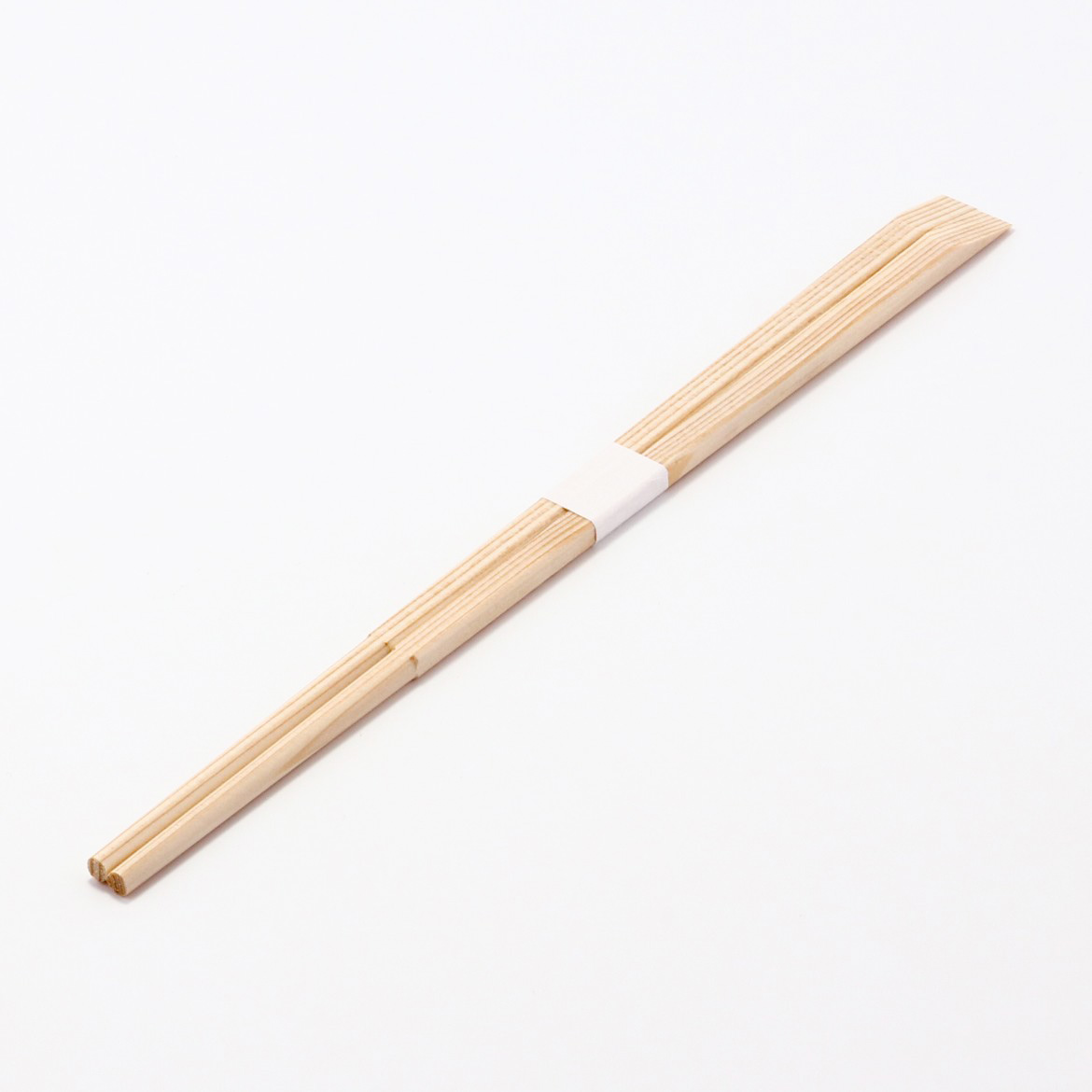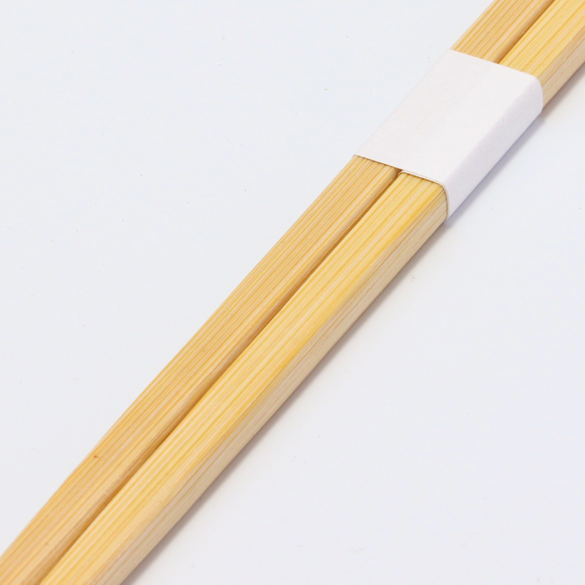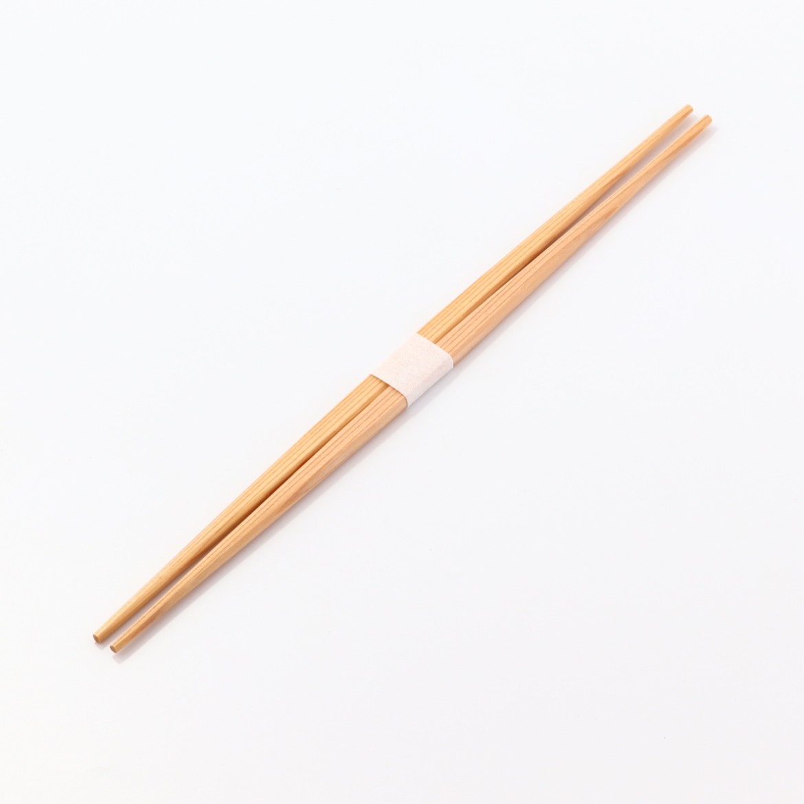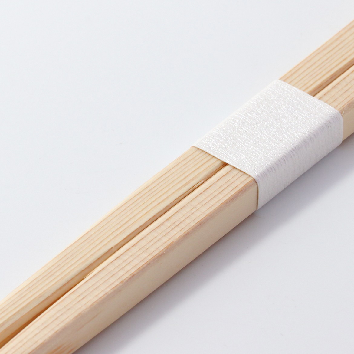 単価69.0円~奈良県吉野地方で生産された杉のお箸。木目が美しい角箸で、箸の頭部が四角錐に削られているのが特徴的で、箸先は丸く仕上げられています。また、箸帯も紙でありながら布のような質感がございます。 -