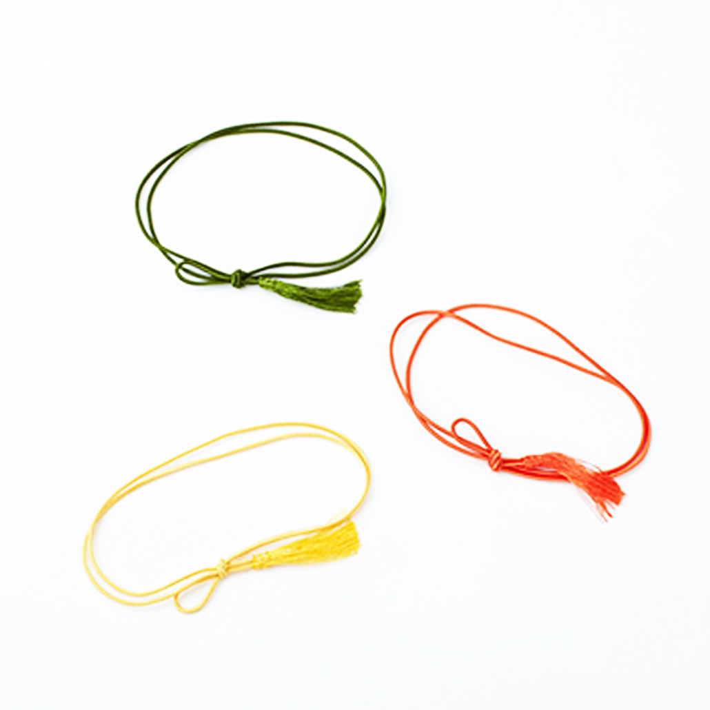 単価24.0円~全5色。 華奢なデザインでありながら、削ぎ落したシンプルさが使いやすい『彩宝ゴム』。 名の通りどこかキラッと光るような鮮やかさが、程よく主張し、折になじみます。 二重結びで、より華やかな印象に。 -