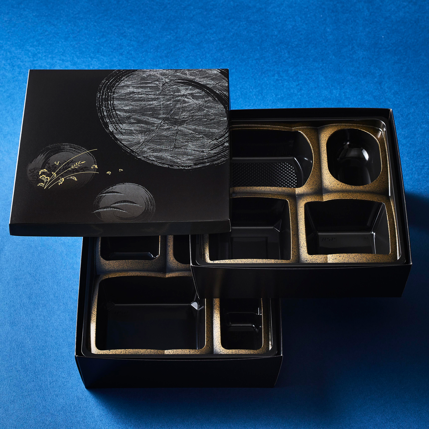 プラの折箱を中心に、ファルカタの折箱、仕切付の紙製一段・二段折箱もご用意しており、品数の多い仕出し弁当や、法事・会合・イベントなど大人数分をまとめてご用意するシーンにもおすすめです。