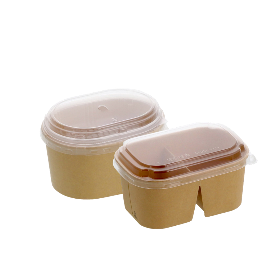 単価16.0円~※本体・蓋別売。本体にフチのないスタイリッシュでシンプルな電子レンジ対応の紙容器です。2つに区切られた中仕切のご用意もございます。 -