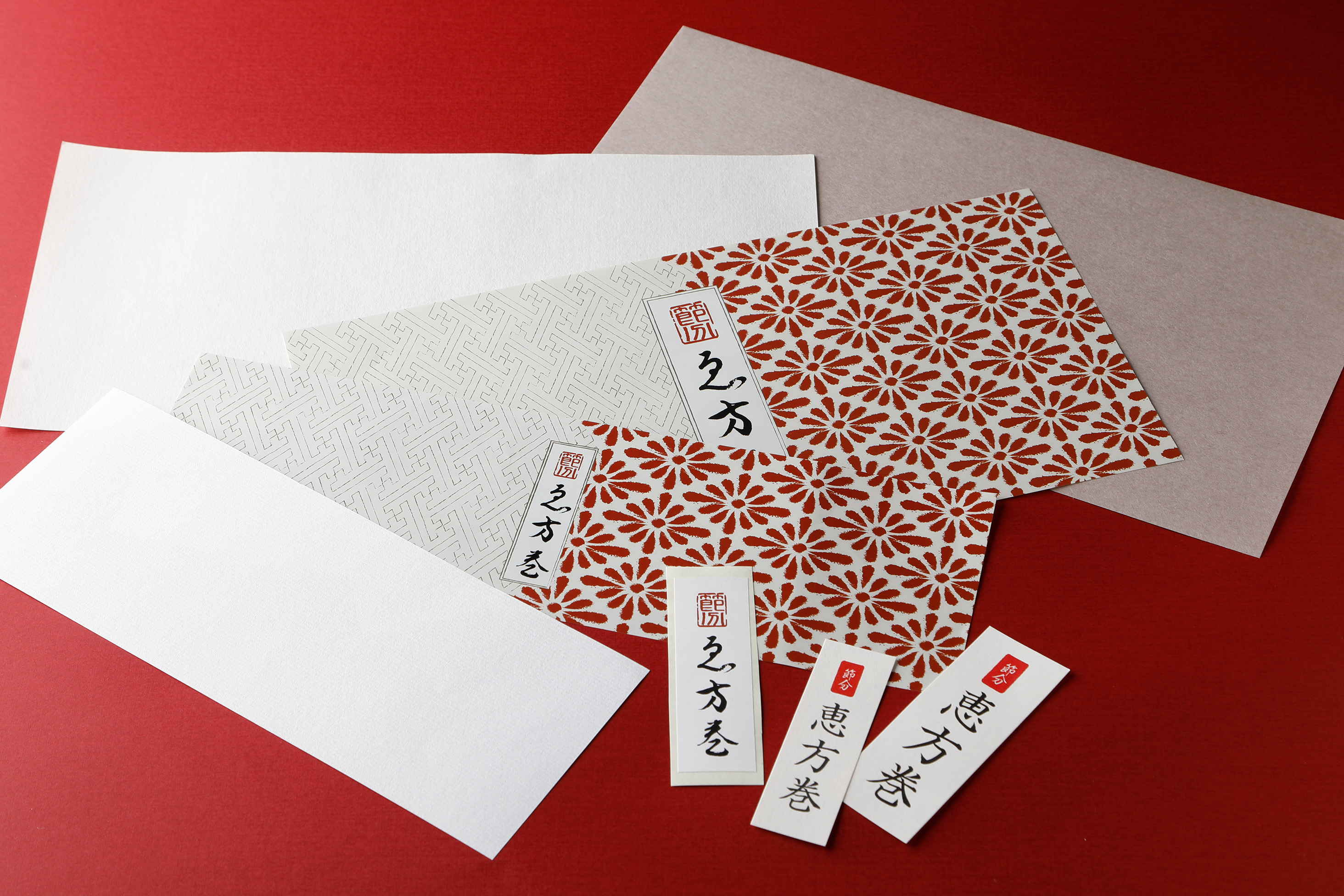 折箱や包みに合わせてデザイン・サイジングした、恵方巻専用の掛紙・シール。