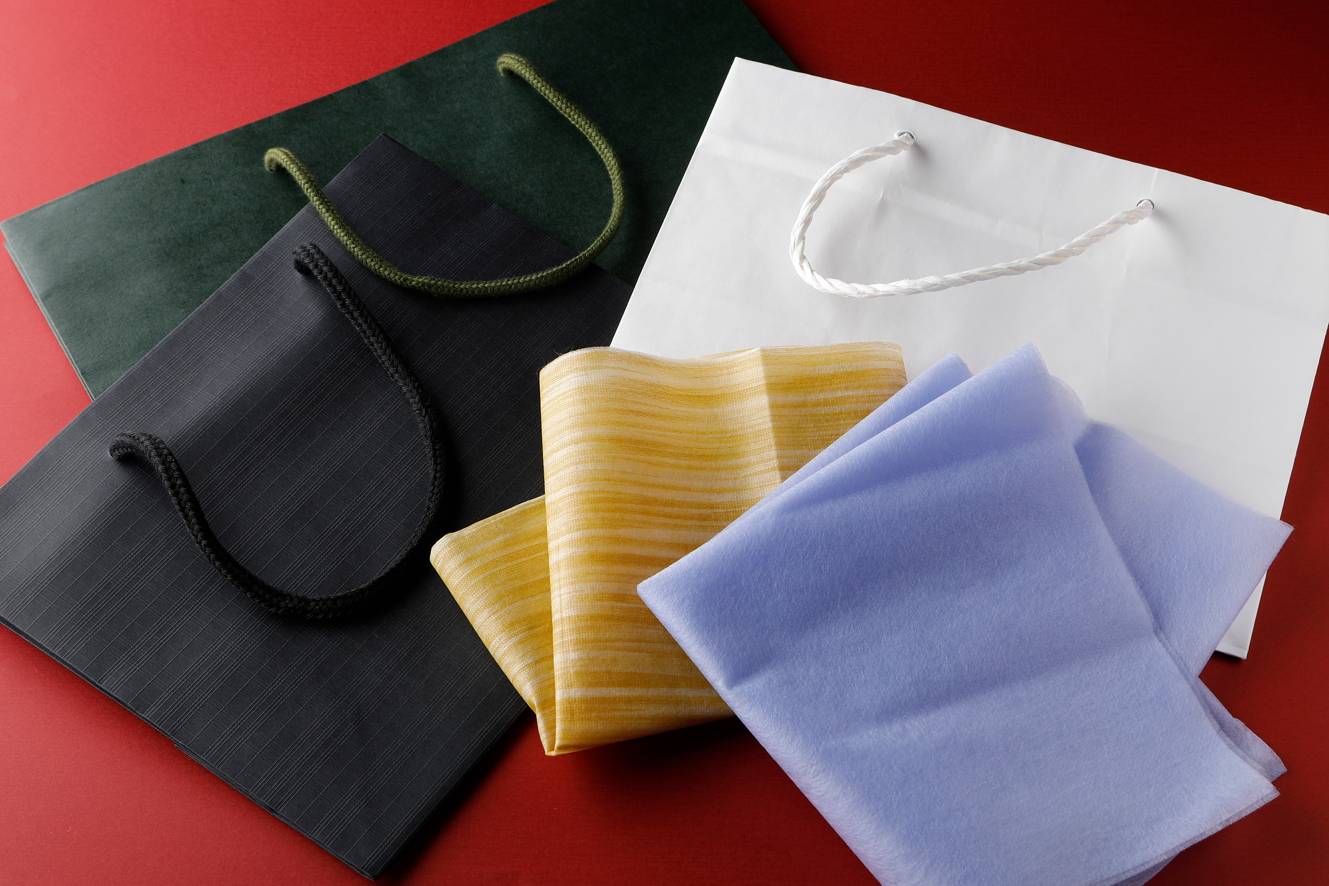 テイクアウトや贈答シーンに欠かせない、手提袋や風呂敷。