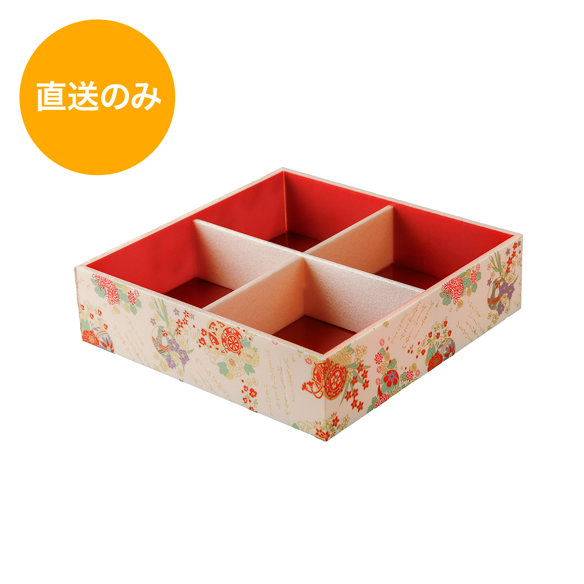 単価152.0円~四分する変形十字の仕切りが付いた、安価な板を使用した折箱です。 小さいマスには小鉢50がぴったりと入りますので、 汁物や汁もれしやすいおかずを入れる際には併せてご利用ください。 【ケース購入... -