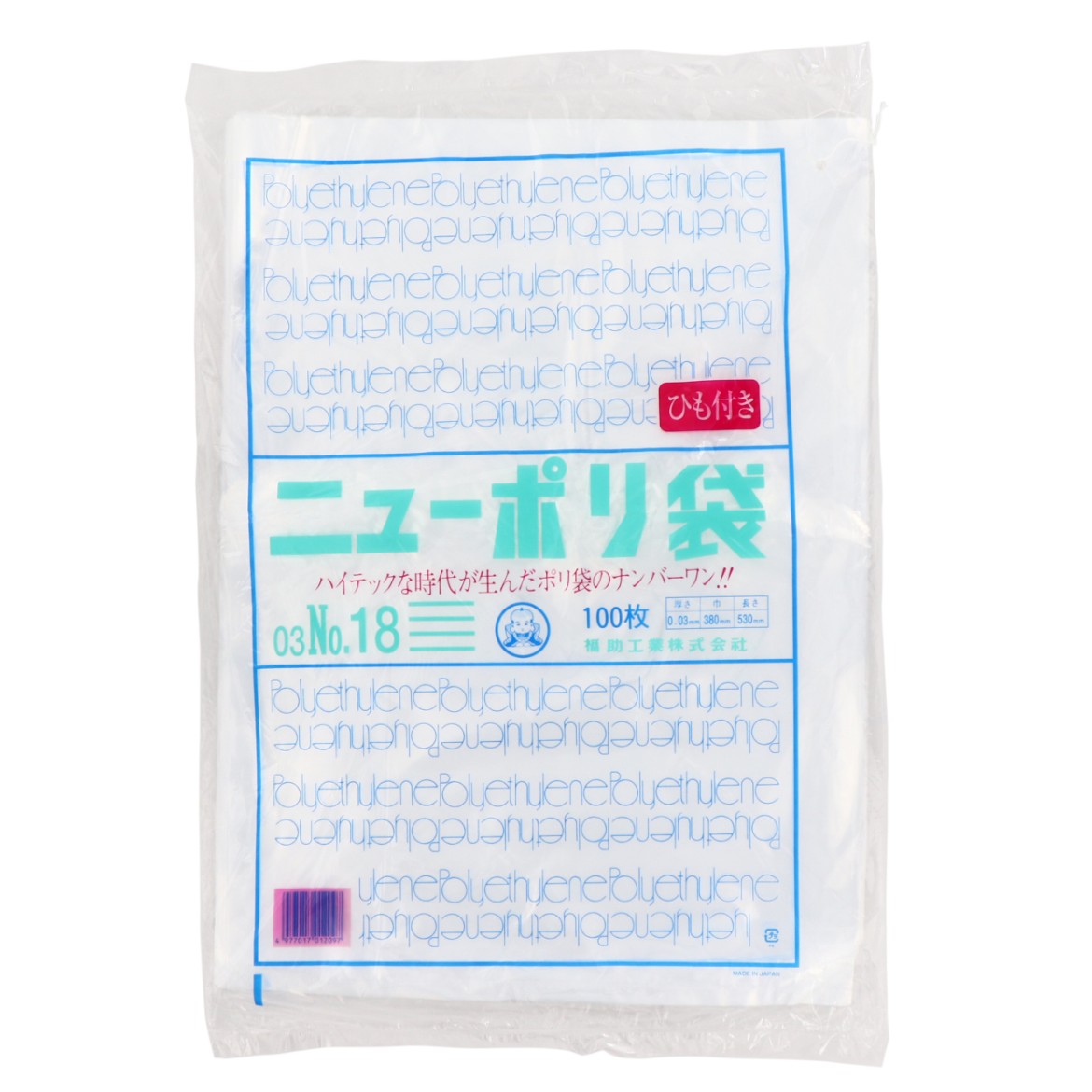 単価11.0円~サイズ:0.03mm×460mm×600mm 強度、透明度、開口性に優れた、標準的な0.03mmの厚さのポリ袋です。 ※No.20は紐無しタイプです。