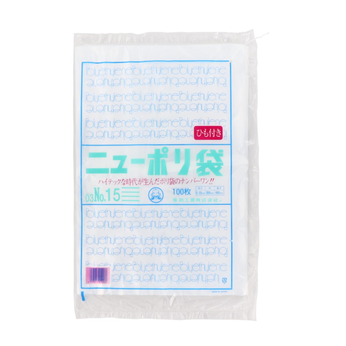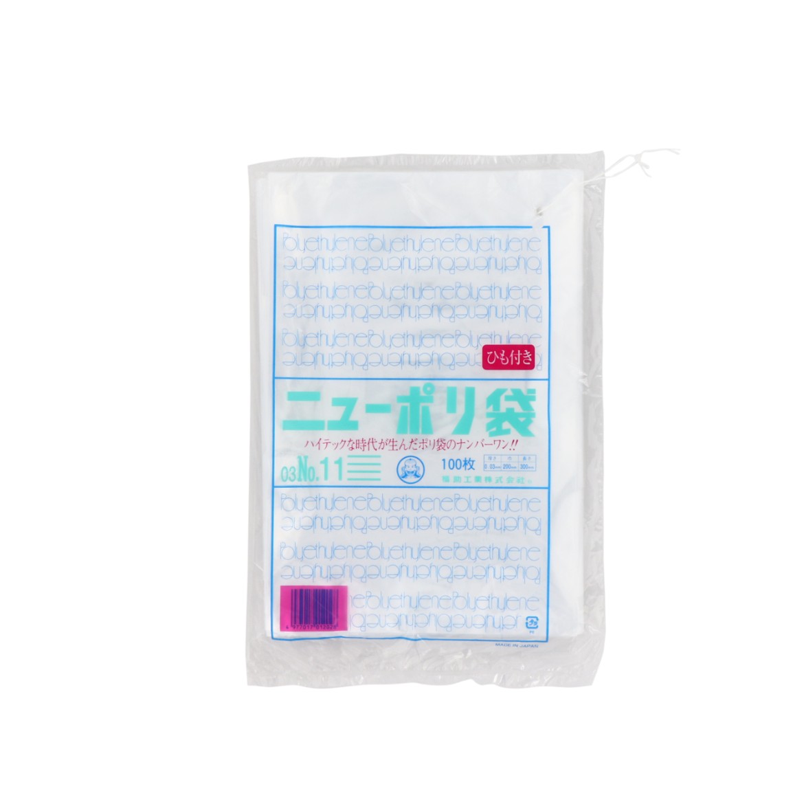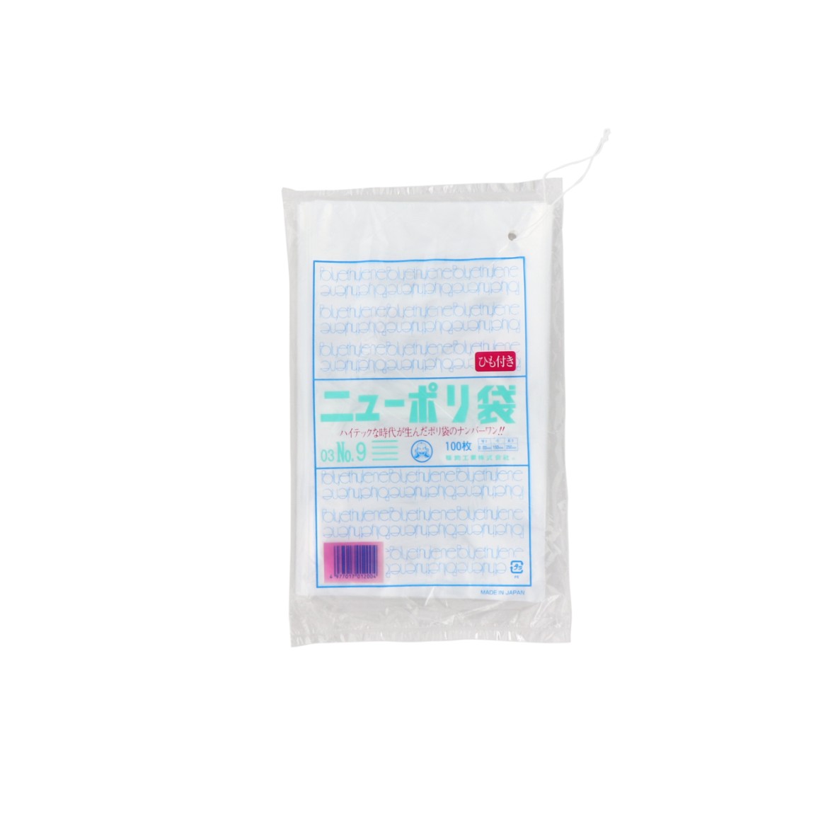 単価1.0円~サイズ:厚さ0.03mm×100mm×190mm 強度、透明度、開口性に優れた、標準的な0.03mmの厚さのポリ袋です。 ※No.5は紐無しタイプです。 -