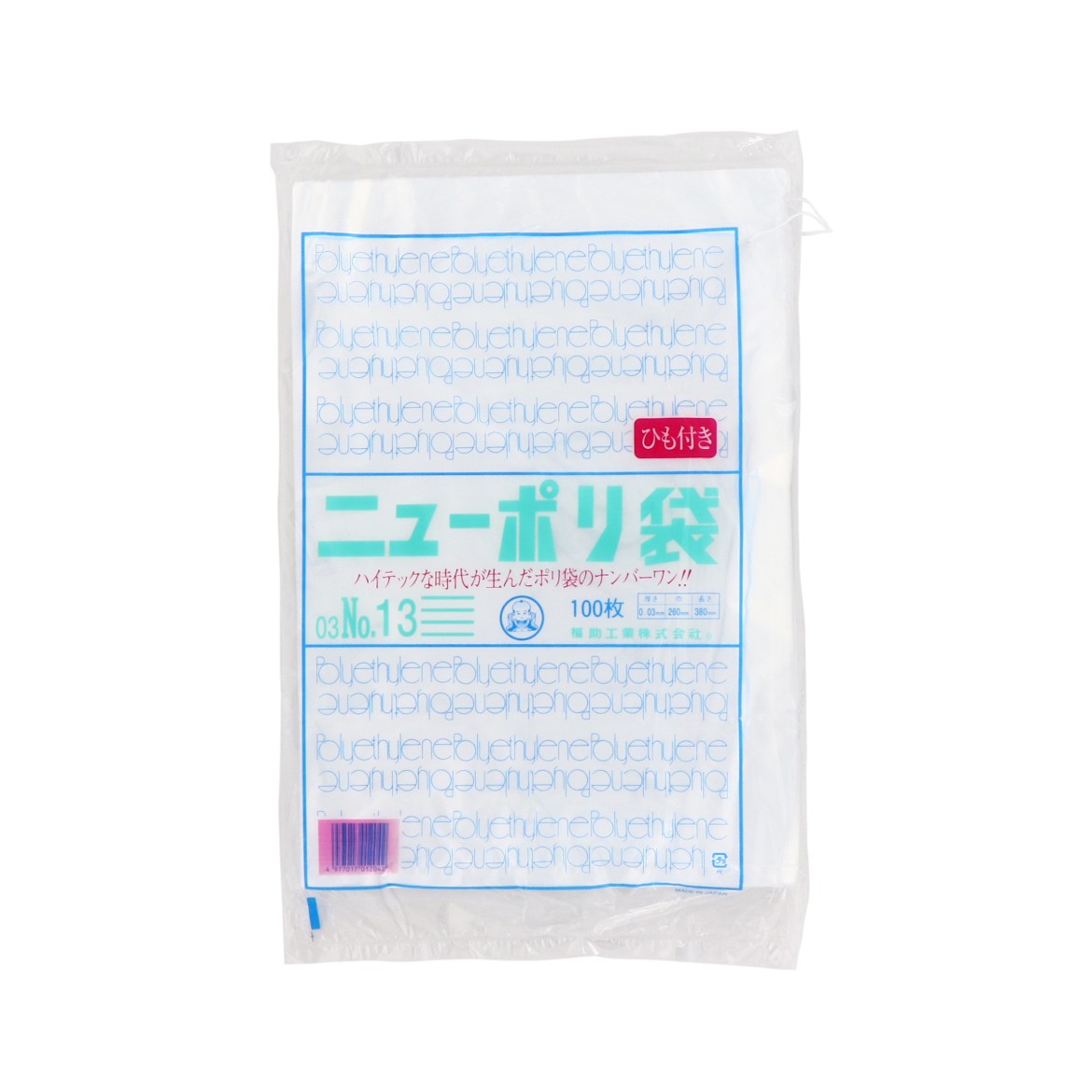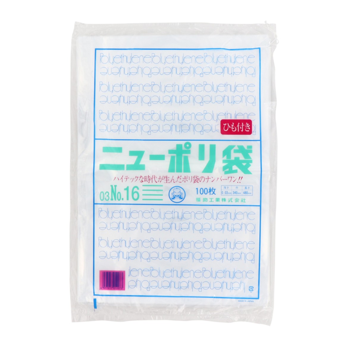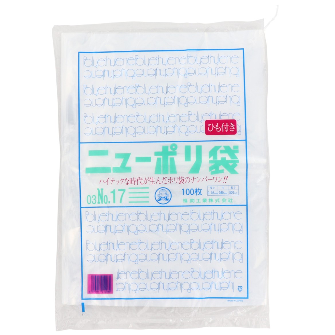 単価1.0円~サイズ:厚さ0.03mm×100mm×190mm 強度、透明度、開口性に優れた、標準的な0.03mmの厚さのポリ袋です。 ※No.5は紐無しタイプです。 -